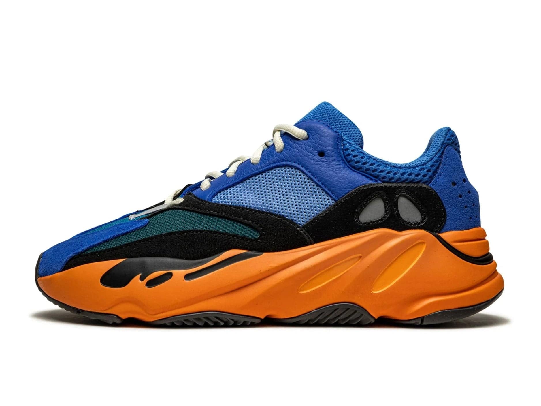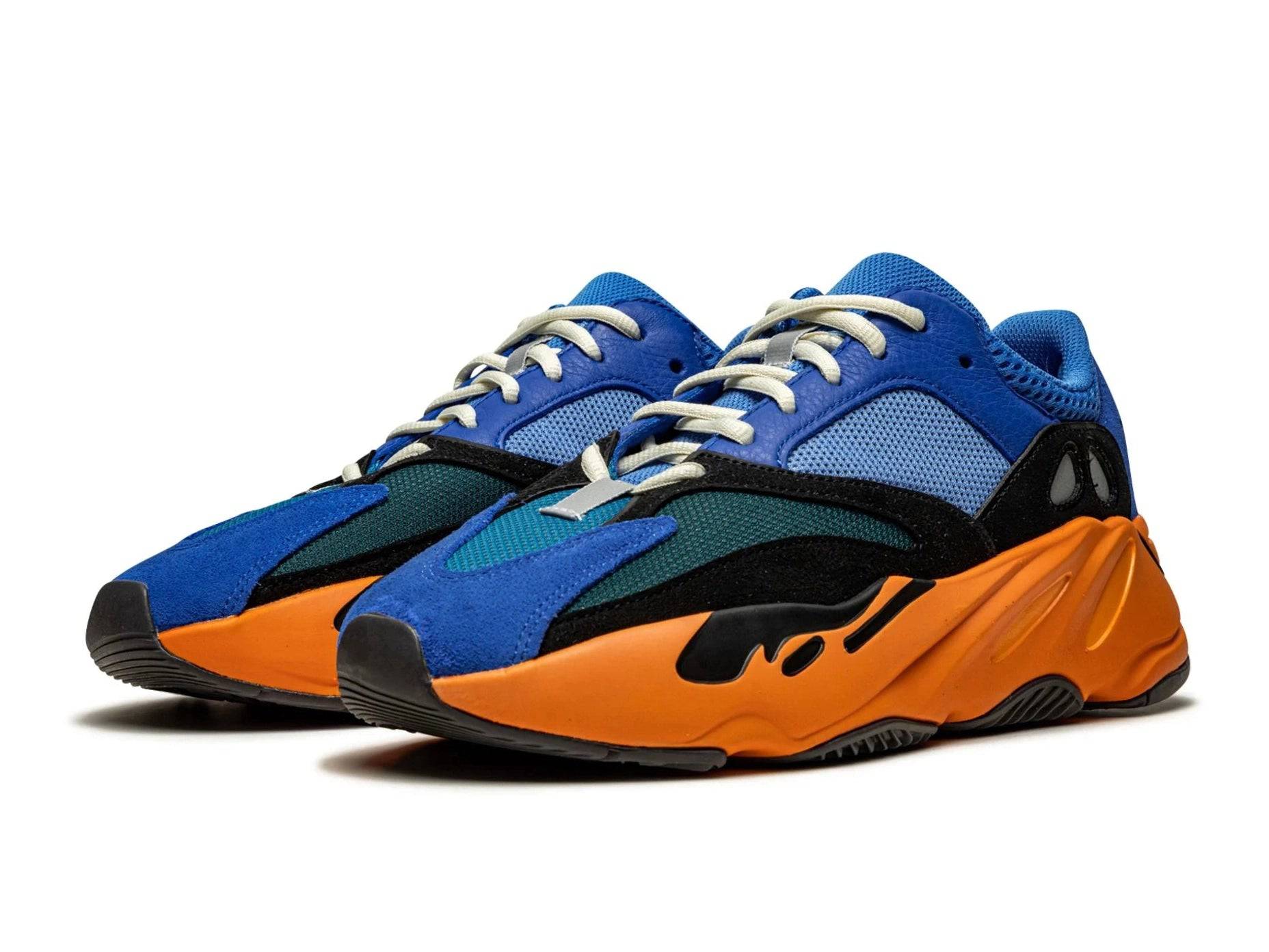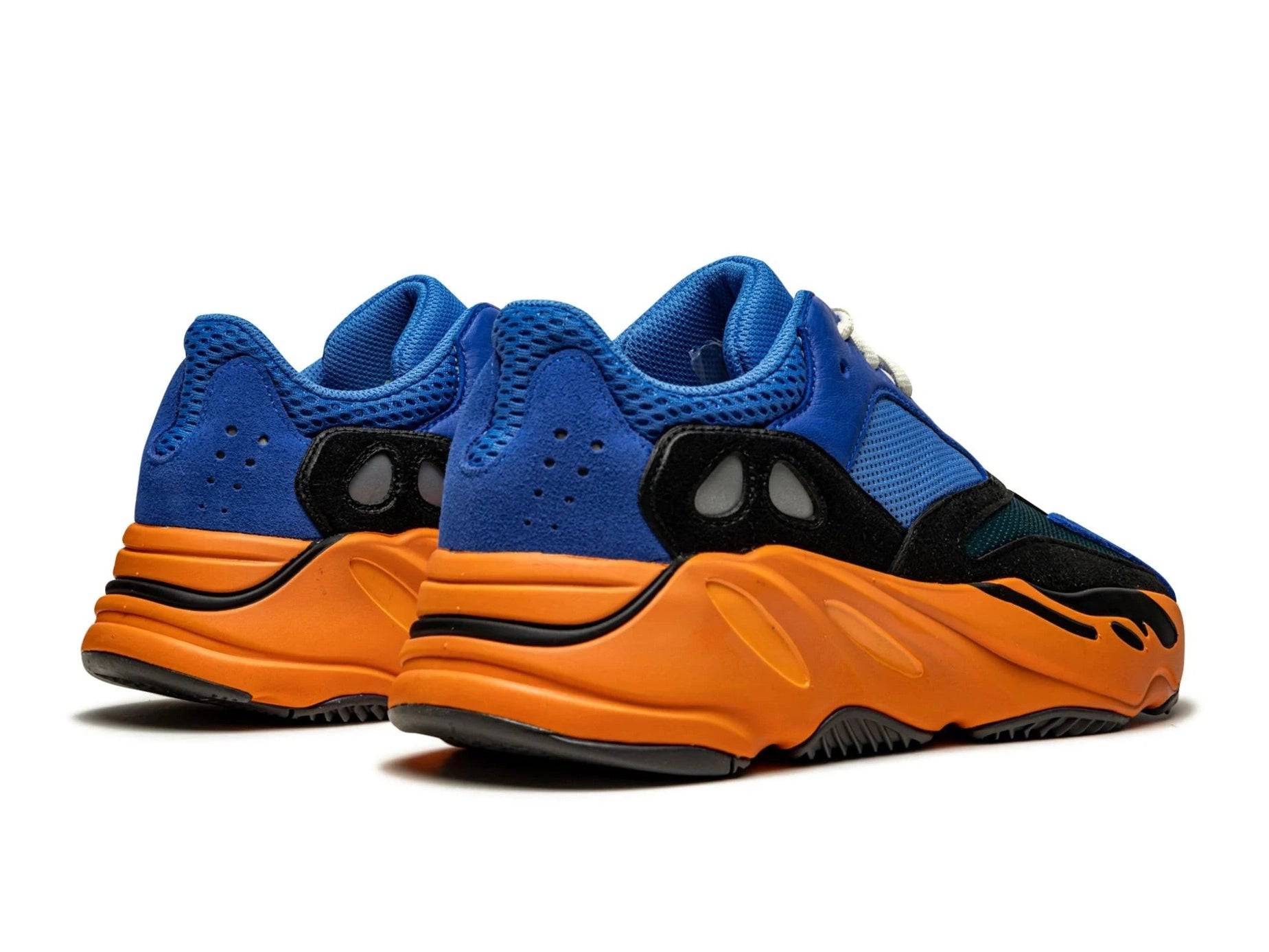 De Adidas Yeezy Boost 700 Bright Blue is een sneaker die geen moment onopgemerkt blijft. Deze colorway mixt levendig kobaltblauw met neonoranje en diepe zwarttinten — precies wat je zoekt als je van bold en unapologetic houdt. Het bovenwerk combineert gaas, suède en premium leer voor een rijke textuur en stevige feel.