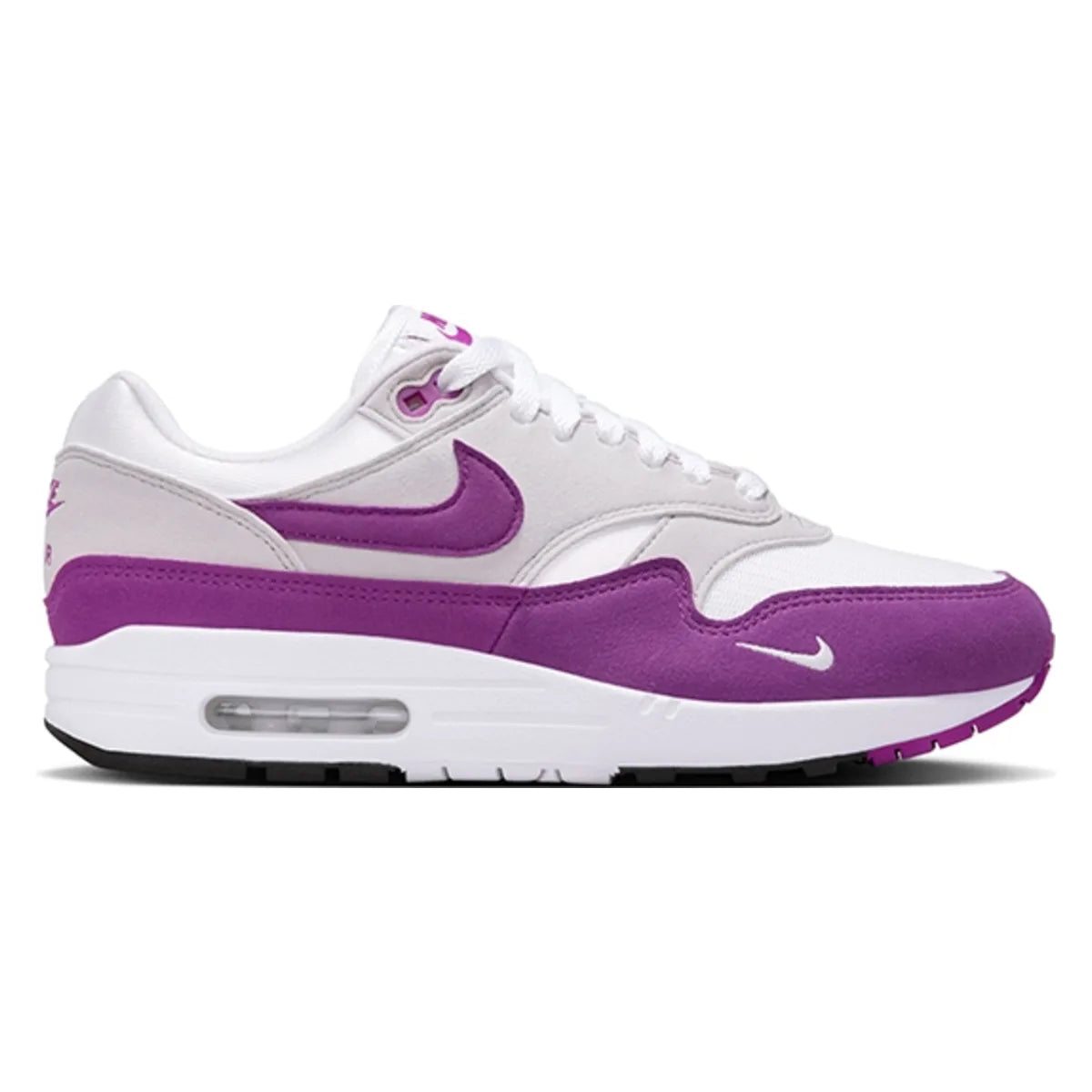 - Design: Klassieke Air Max 1 silhouet met mini-swoosh detail en zichtbare Air unit