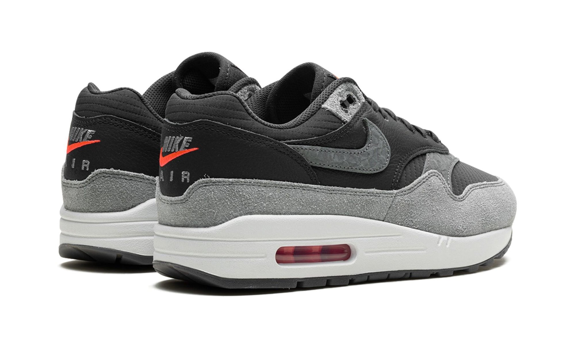 De donkere grijstinten worden subtiel doorbroken door een feloranje mini-Swoosh op de hiel en het zichtbare Air Max-element, waarmee je outfit een opvallende boost krijgt. De klassieke Air Max 1 zool met zichtbare luchtunit zorgt niet alleen voor comfort, maar ook voor die authentieke retro feel die je van dit model verwacht.