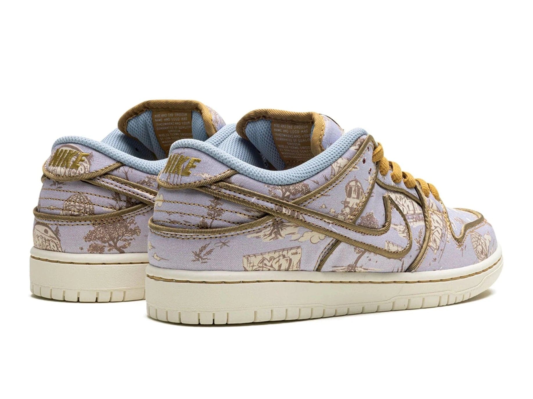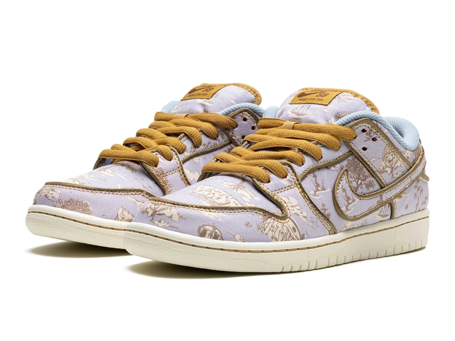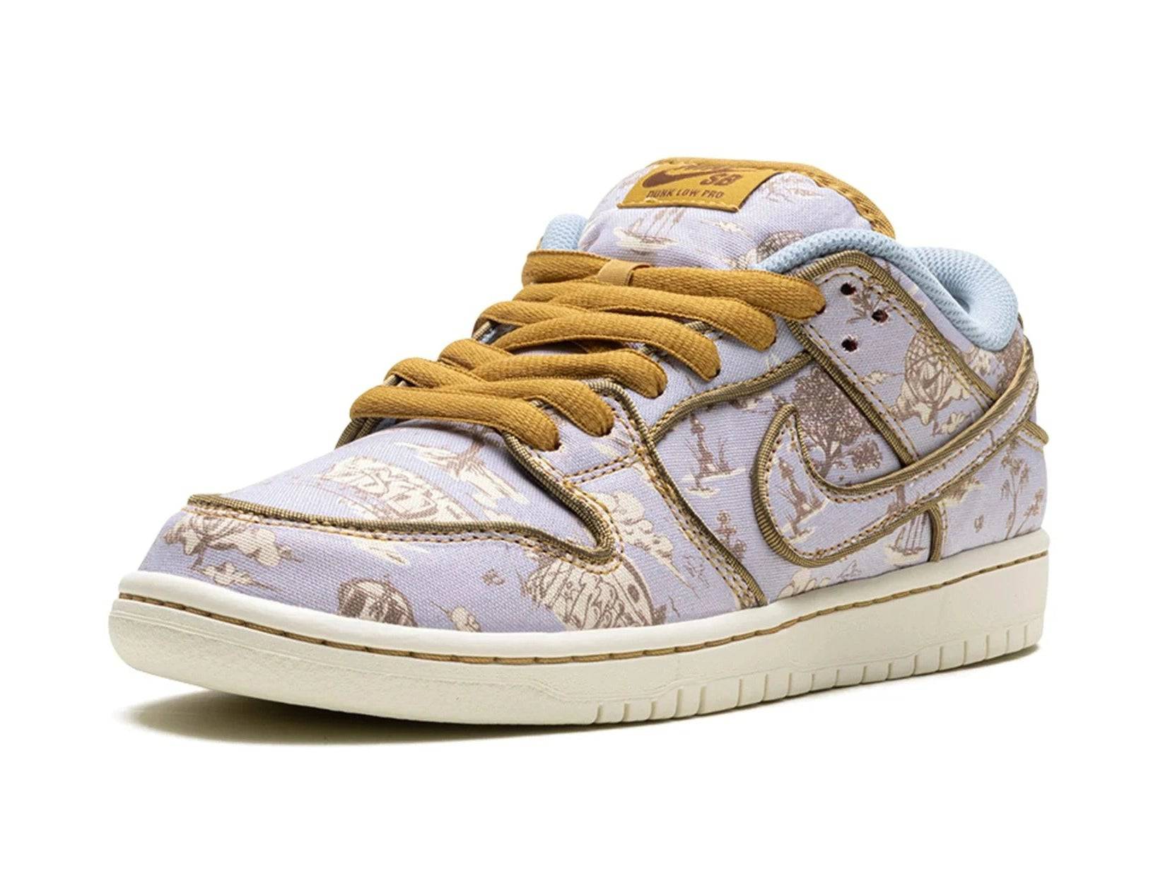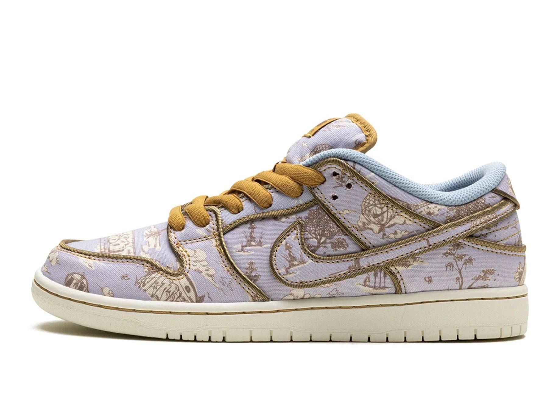 De Nike Dunk Low SB Premium City of Style is een sneaker die niet alleen comfort levert maar ook een kunstwerk is voor je voeten. Deze unieke uitvoering van de iconische Dunk Low SB straalt creativiteit en elegantie uit, zonder zijn street credibility te verliezen. De upper is bekleed met een all-over toile-achtige print in soft paars en aardetinten, gecombineerd met contrasterende gouden accenten op de veters, Swoosh en details – een kleurenspel dat direct in het oog springt.